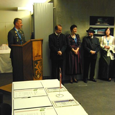 Obstlt Pieber, der Kommandant des Junkerbataillons, sprach in seiner Festrede, dass die Herausforderung der Miliz, und im speziellen des Junkerbataillons für die Zukunft lautet: „GOING INTERNATIONAL“. Die Milizverbände sollten, so wie es bereits beim Junkerbataillon der Fall ist, mit Berufssoldaten verstärkt werden und man sollte ein System von Reservestreitkräften, das auf Freiwilligkeit beruht, schaffen, ähnlich dem der US Army National Guard, das ein „integraler Bestandteil“ der Armee ist. Die Ausbildung bzw. die Verwendung der Soldaten und Truppen müsste an die „aktive Armee“ kompatibel und interoperabel für alle Aufgaben – im Inland und im Ausland – angeglichen werden. Als ein kompatibles und interoperables Element in der Streitkräftestruktur müssen diese Soldaten für die Erfüllung aller staatlichen, nationalen und internationalen Aufgaben im Frieden und im Krieg befähigt sein. Man darf nicht eine Miliz schaffen, die nur Wach- und Sicherungsaufgaben erledigt und damit nach den präsenten Kräften zum Bundesheer „zweiter Klasse“ degradiert wird. Im Anschluss an die Partnerschaftsfeier wurde der unwiderstehliche Junker 04 verkostet und danach gab es zum Abschluss noch ein steirisches Schmankerlbuffet.
